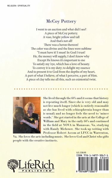 McCoy Pottery I went to an auction and what did I see? A piece of McCoy pottery. A vase, bright yellow and tall And that's not all! There was a heron thereon! The color was divine and the lines were sublime "I must have it! I must! In God I trust! He, the money will supply, I don't know why Except He knows it's important to me To satisfy my 'eye, which has a love of beauty. To convey it is my duty; to delight my essence And to present it to God from the depths of my heart, A part of what I believe, of what I perceive, a part of Him. A piece of clay tells me all this, such an existential twist.