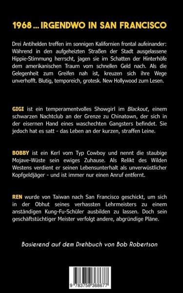 1968 ... irgendwo in San FranciscoDrei Antihelden treffen im sonnigen Kalifornien frontal aufeinander: Während in den aufgeheizten Straßen der Stadt ausgelassene Hippie-Stimmung herrscht, jagen sie im Schatten der Hinterhöfe dem amerikanischen Traum vom schnellen Geld nach. Als die Gelegenheit zum Greifen nah ist, kreuzen sich ihre Wege unverhofft. Blutig, temporeich, grotesk. New Hollywood zum Lesen.GIGI ist ein temperamentvolles Showgirl im Blackout, einem schwarzen Nachtclub an der Grenze zu Chinatown, der sich in der eisernen Hand eines waschechten Gangsters befindet. Sie jedoch hat es satt - das Leben an der kurzen, straffen Leine.BOBBY ist ein Kerl vom Typ Cowboy und nennt die staubige Mojave-Wüste sein ewiges Zuhause. Als Relikt des Wilden Westens verdient er seinen Lebensunterhalt als unverwüstlicher Kopfgeldjäger - und ist immer nur einen Anruf entfernt.REN wurde von Taiwan nach San Francisco geschickt, um sich in der Obhut seines verhassten Lehrmeisters zu einem anständigen Kung-Fu-Schüler ausbilden zu lassen. Doch sein geschäftstüchtiger Meister verfolgt andere, abgründige Pläne.