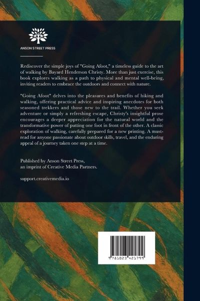 Rediscover the simple joys of "Going Afoot," a timeless guide to the art of walking by Bayard Henderson Christy. More than just exercise, this book explores walking as a path to physical and mental well-being, inviting readers to embrace the outdoors and connect with nature. "Going Afoot" delves into the pleasures and benefits of hiking and walking, offering practical advice and inspiring anecdotes for both seasoned trekkers and those new to the trail. Whether you seek adventure or simply a refreshing escape, Christy's insightful prose encourages a deeper appreciation for the natural world and the transformative power of putting one foot in front of the other. A classic exploration of walking, carefully prepared for a new printing. A must-read for anyone passionate about outdoor skills, travel, and the enduring appeal of a journey taken one step at a time. This work has been selected by scholars as being culturally important, and is part of the knowledge base of civilization as we know it. This work is in the public domain in the United States of America, and possibly other nations. Within the United States, you may freely copy and distribute this work, as no entity (individual or corporate) has a copyright on the body of the work. Scholars believe, and we concur, that this work is important enough to be preserved, reproduced, and made generally available to the public. We appreciate your support of the preservation process, and thank you for being an important part of keeping this knowledge alive and relevant.