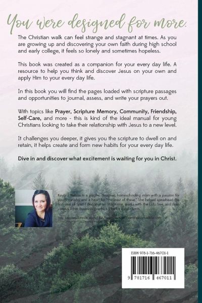 The Christian walk can feel strange and stagnant at times. As you are growing up and discovering your own faith during high school and early college, it feels so lonely and sometimes hopeless. This book was created as a companion for your every day life. A resource to help you think and discover Jesus on your own and apply Him to your every day life. In this book you will find the pages loaded with scripture passages and opportunities to journal, assess, and write your prayers out. With topics like Prayer, Scripture Memory, Community, Friendship, Self-Care, and more - this is kind of the ideal manual for young Christians looking to take their relationship with Jesus to a new level. It challenges you deeper, it gives you the scripture to dwell on and retain, it helps create and form new habits for your every day life. Dive in and discover what excitement is waiting for you in Christ.
