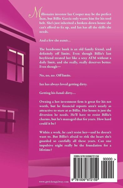 Millionaire investor Ian Cooper may be the perfect man, but Billie Garcia only wants him for his tool belt. She's just inherited a broken-down house she can't afford to fix up, and Ian has all the skills she needs. And a few she wants... The handsome hunk is an old family friend, and definitely off limits. Even though Billie's last boyfriend treated her like a sexy ATM without a daily limit, and she really, really deserves better. Even though- No, no, no. Off limits. Ian has always loved getting dirty. Getting his hands dirty.... Owning a hot investment firm is great for his net worth, but he financial reports aren't nearly as attractive to stare at as Billie. Her house is just the diversion he needs. He'll have to resist Billie's charms, but he's managed that for years. How hard could it be? Within a week, he can't resist her-and he doesn't want to. But Billie's afraid to risk the heart she's guarded so carefully all these years. Can one impulsive night really be the foundation for a lifetime?