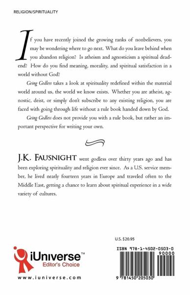 If you have recently joined the growing ranks of nonbelievers, you may be wondering where to go next. What do you leave behind when you abandon religion? Is atheism and agnosticism a spiritual dead-end? How do you find meaning, morality, and spiritual satisfaction in a world without God? Going Godless takes a look at spirituality redefined within the material world around us, the world we know exists. Whether you are atheist, agnostic, deist, or simply don't subscribe to any existing religion, you are faced with going through life without a rule book handed down by God. Going Godless does not provide you with a rule book, but rather an important perspective for writing your own.