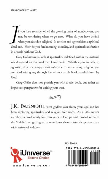 If you have recently joined the growing ranks of nonbelievers, you may be wondering where to go next. What do you leave behind when you abandon religion? Is atheism and agnosticism a spiritual dead-end? How do you find meaning, morality, and spiritual satisfaction in a world without God? Going Godless takes a look at spirituality redefined within the material world around us, the world we know exists. Whether you are atheist, agnostic, deist, or simply don't subscribe to any existing religion, you are faced with going through life without a rule book handed down by God. Going Godless does not provide you with a rule book, but rather an important perspective for writing your own.