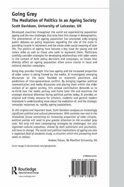 'In this original and important book, Scott Davidson analyses an increasingly significant political and cultural phenomenon. With societies now and in the immediate future containing an increasing proportion of older citizens, political parties will need to give greater attention to the so-called grey vote. Not only will their campaigning strategies be challenged, but also ingrained cultural prejudices, shared by both politicians and journalists, will have to change. The social and political implications of ageing are also a neglected field of academic study, a situation which this pioneering book seeks to redress.' Andrew Tolson, De Montfort University, UK