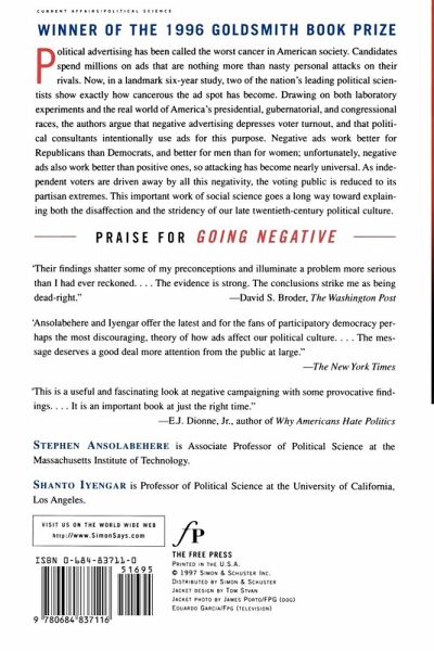 Political advertising has been called the worst cancer in American society. Ads cost millions, and yet the entire campaign season is now filled with nasty and personal attacks. In this landmark six-year study, two of the nation's leading political scientists show exactly how cancerous the ad spot has become. 16 illustrations.