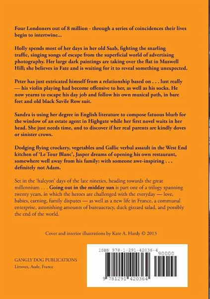 Four Londoners out of 8 million - through a series of coincidences their lives begin to intertwine... Set in the 'halcyon' days of the late nineties, heading towards the great millennium . . . Going out in the midday sun is part one of a trilogy spanning twenty years, in which the heroes are challenged with the everyday - love, babies, earning, family disputes - as well as a new life in France, a communal enterprise, astonishing amounts of bureaucracy, duck gizzard salad, and possibly the end of the world.