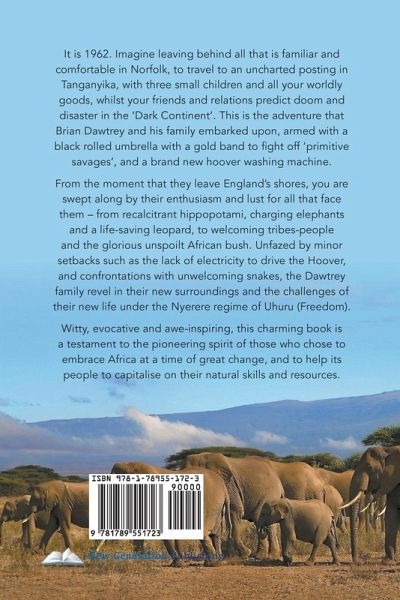 It is 1962. Imagine leaving behind all that is familiar and comfortable in Norfolk, to travel to an uncharted posting in Tanganyika, with three small children and all your worldly goods, whilst your friends and relations predict doom and disaster in the 'Dark Continent'. This is the adventure that Brian Dawtrey and his family embarked upon, armed with a black rolled umbrella with a gold band to fight off primitive savages, and a brand new hoover washing machine. From the moment that they leave England's shores, you are swept along by their enthusiasm and lust for all that face them - from recalcitrant hippopotami, charging elephants and a life-saving leopard, to welcoming tribes-people and the glorious unspoilt African bush. Unfazed by minor setbacks such as the lack of electricity to drive the Hoover, and confrontations with unwelcoming snakes, the Dawtrey family revel in their new surroundings and the challenges of their new life under the Nyerere regime of Uhuru (Freedom). Witty, evocative and awe-inspiring, this charming book is a testament to the pioneering spirit of those who chose to embrace Africa at a time of great change, and to help its people to capitalise on their natural skills and resources.