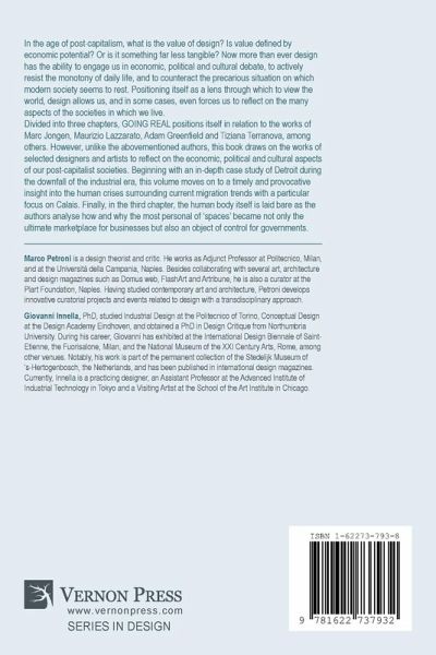 In the age of post-capitalism, what is the value of design? Is value defined by economic potential? Or is it something far less tangible? Now more than ever design has the ability to engage us in economic, political and cultural debate, to actively resist the monotony of daily life, and to counteract the precarious situation on which modern society seems to rest. Positioning itself as a lens through which to view the world, design allows us, and in some cases, even forces us to reflect on the many aspects of the societies in which we live. Divided into three chapters, GOING REAL positions itself in relation to the works of Marc Jongen, Maurizio Lazzarato, Adam Greenfield and Tiziana Terranova, among others. However, unlike the abovementioned authors, this book draws on the works of selected designers and artists to reflect on the economic, political and cultural aspects of our post-capitalist societies. Beginning with an in-depth case study of Detroit during the downfall of the industrial era, this volume moves on to a timely and provocative insight into the human crises surrounding current migration trends with a particular focus on Calais. Finally, in the third chapter, the human body itself is laid bare as the authors analyse how and why the most personal of ‘spaces’ became not only the ultimate marketplace for businesses but also an object of control for governments.