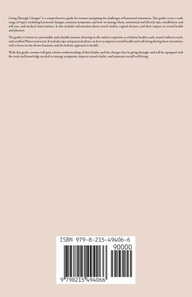 Going Through Changes" is a comprehensive guide for women navigating the challenges of hormonal transitions. This guide covers a wide range of topics including hormonal changes, common symptoms, and how to manage them, nutritional and lifestyle tips, mindfulness and self-care, and medical interventions. It also includes information about sexual vitality, vaginal dryness, and their impact on sexual health and pleasure. The guide is written in a personable and relatable manner, drawing on the author's expertise as a holistic health coach, sexual wellness coach, and certified Pilates instructor. It includes tips and practical advice on how to improve overall health and well-being during these transitions, with a focus on the divine feminine and the holistic approach to health. With this guide, women will gain a better understanding of their bodies and the changes they're going through, and will be equipped with the tools and knowledge needed to manage symptoms, improve sexual vitality, and maintain overall well-being.
