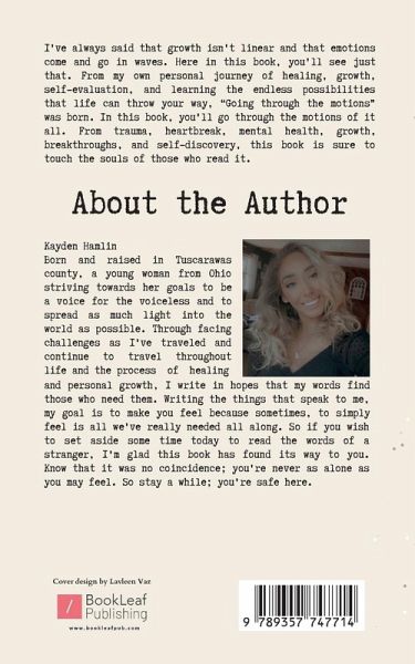 I've always said that growth isn't linear and that emotions come and go in waves. Here in this book, you'll see just that. From my own personal journey of healing, growth, self-evaluation, and learning the endless possibilities that life can throw your way, "Going through the motions" was born. In this book, you'll go through the motions of it all. From trauma, heartbreak, mental health, growth, breakthroughs, and self-discovery, this book is sure to touch the souls of those who read it.