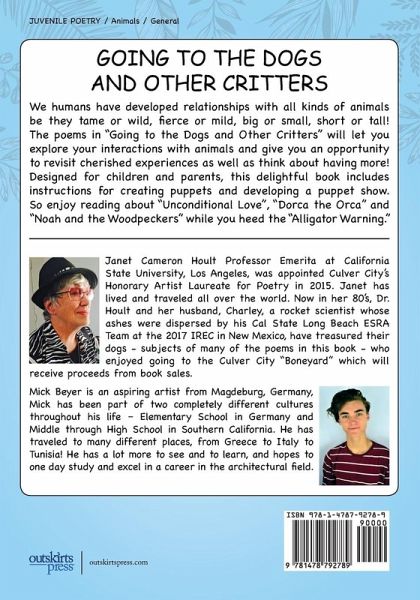 We humans have developed relationships with all kinds of animals be they tame or wild, fierce or mild, big or small, short or tall! The poems in "Going to the Dogs and Other Critters" will let you explore your interactions with animals and give you an opportunity to revisit cherished experiences as well as think about having more! Designed for children and parents, this delightful book includes instructions for creating puppets and developing a puppet show. So enjoy reading about "Unconditional Love", "Dorca the Orca" and "Noah and the Woodpeckers" while you heed the "Alligator Warning."