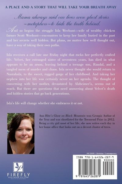A Place and a Story That Will Take Your Breath Away Mama always said our lives were ghost stories--metaphors--to hide the truth behind. And so begins the struggle Isla Weehunt--wife of wealthy chicken farmer, Scott Weehunt--encounters to keep her family buried in the past and her secrets well hidden. But plans, no matter how well thought out, have a way of taking their own paths. Isla receives a call late one Friday night that rocks her perfectly crafted life. Velvet, her estranged sister of seventeen years, has died in what appears to be an arson, leaving behind a teenage son, Randal, and a tangled mess of murder and chaos. Isla never thought she would return to Nantahala, to the sweet, rugged gorge of her childhood. And taking her nephew into her life was certainly never on her agenda. The thought of conversing with her mother, devastated by Alzheimer's, seems out of reach. But there are questions that need answering about Velvet's death and hidden stories that go back generations. Isla's life will change whether she embraces it or not.
