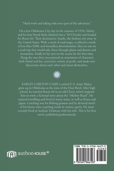 "Hard work and taking risks were part of the adventure." On a hot Oklahoma City day in the summer of 1956, Marley and his best friend Stick climbed into a '49 Chrysler and headed for Route 66. Their destination: Seattle, the farthest city away in the United States. With a stack of road maps, a collective worth of less than $300, and boundless determination, they set out on a road trip that would take them through plains and deserts and mountains, finally to lay eyes on the ocean for the first time. Along the way they encountered an assortment of characters both friend and foe, survived a variety of perils, and made new discoveries about each other and about themselves.
