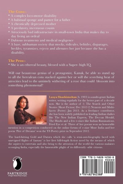 The Cons:- * A complex loco-motor disability * A habitual sponge and punter for a father * A chronically depressed mother * A predatory, incestuous cousin * Atrociously bad infrastructure in small-town India that makes day to day living an ordeal * Dubious treatments and medical negligence * A base, subhuman society that mocks, ridicules, belittles, disparages, heckles, tyrannizes, rejects and alienates her just because she has a disability. The Pros:- * She is an ethereal beauty, blessed with a Super- high IQ. Will our beauteous genius of a protagonist, Kanak, be able to stand up to all the herculean cons stacked against her or will the scorching heat of atrocities lead to the untimely withering of a rose that could blossom into something phenomenal?