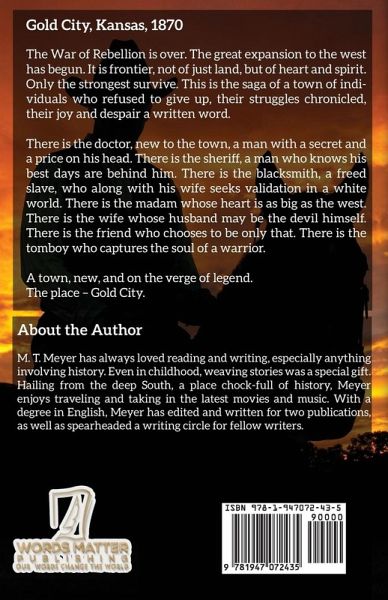 Gold City, Kansas, 1870 The War of Rebellion is over. The great expansion to the west has begun. It is frontier, not of just land, but of heart and spirit. Only the strongest survive. This is the saga of a town of individuals who refused to give up, their struggles chronicled, their joy and despair a written word. There is the doctor, new to the town, a man with a secret and a price on his head. There is the sheriff, a man who knows his best days are behind him. There is the blacksmith, a freed slave, who along with his wife seeks validation in a white world. There is the madam whose heart is as big as the west. There is the wife whose husband may be the devil himself. There is the friend who choses to be only that. There is the tomboy who captures the soul of a warrior. A town, new, and on the verge of legend. The place - Gold City.