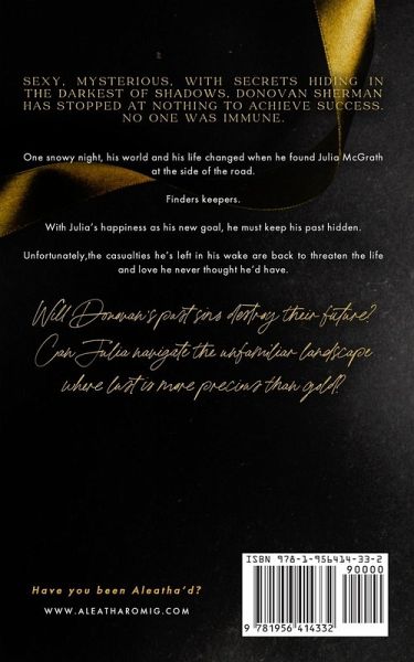 Sexy, mysterious, with secrets hiding in the darkest of shadows, Donovan Sherman has stopped at nothing to achieve success. No one was immune. One snowy night, his world and his life changed when he found Julia McGrath at the side of the road. Finders keepers. With Julia's happiness as his new goal, he must keep his past hidden. Unfortunately, the casualties he's left in his wake are back to threaten what he never thought he'd have. Will Donovan's past sins destroy their future? Can Julia navigate the unfamiliar landscape where lust is more precious than gold? From New York Times bestselling author Aleatha Romig comes a brand-new age-gap, family saga, chance meeting, contemporary romantic-suspense novel in the world of high finance, where success is sweet and revenge is sweeter. Have you been Aleatha'd? *GOLD LUST, a full-length novel, is book three of the four book Sin Series that began with RED SIN, continued with GREEN ENVY and GOLD LUST, and will conclude with BLACK KNIGHT.