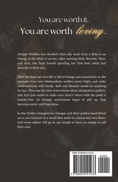 YOU ARE WORTH IT. YOU ARE WORTH LOVING. Juniper Walden was shocked when she went from a Beta to an Omega in the blink of an eye. After meeting Seth, Bennett, Theo, and Arin, she finds herself spending her first heat safely and securely in their care. After the heat, her new life is full of change and uncertainty as she navigates four new relationships, sudden career highs, and rocky confrontations with family. Seth and Bennett would do anything for her, Theo has his own reservations about designation politics, and Arin just wants to make sure June's future with the pack is anxiety-free. As strange occurrences begin to pile up, that becomes easier said than done. In the Golden Omegaverse, Omegas and their golden-hued blood are a rare treasure in a world that seeks to control and own them. And some alphas will go to any length to have an omega to call their own. GOLD MINE is book two in a why choose (MMMMF) omegaverse duology set in the Golden Omegaverse. Part Two delivers June's happily ever after with her pack.