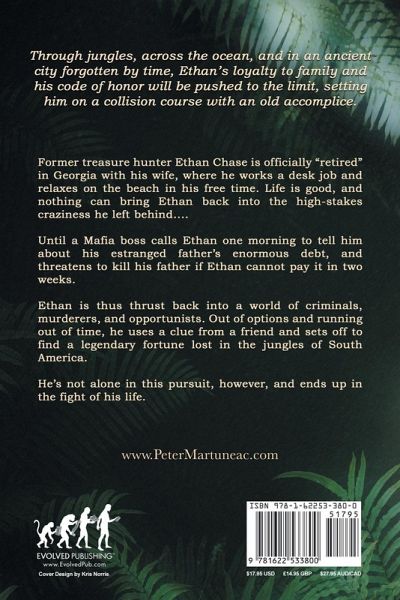 Through jungles, across the ocean, and in an ancient city forgotten by time, Ethan's loyalty to family and his code of honor will be pushed to the limit, setting him on a collision course with an old accomplice. Former treasure hunter Ethan Chase is officially "retired" in Georgia with his wife, where he works a desk job and relaxes on the beach in his free time. Life is good, and nothing can bring Ethan back into the high-stakes craziness he left behind.... Until a Mafia boss calls Ethan one morning to tell him about his estranged father's enormous debt, and threatens to kill his father if Ethan cannot pay it in two weeks. Ethan is thus thrust back into a world of criminals, murderers, and opportunists. Out of options and running out of time, he uses a clue from a friend and sets off to find a legendary fortune lost in the jungles of South America. He's not alone in this pursuit, however, and ends up in the fight of his life. EVOLVED PUBLISHING PRESENTS the third fast-paced book in the "Ethan Chase Thriller" series of globe-trotting, treasure-hunting adventures. Ethan Chase is back, and this time he's after one of the world's greatest hidden treasures. [DRM-Free]