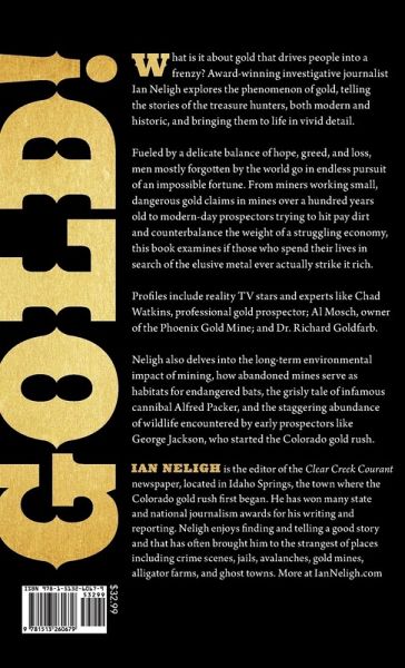 Ian Neligh takes an unflinching look at the people and places gripped by gold fever in the Colorado Rockies. A journey to find the source of gold's enthralling power, and a fascinating chronicle of fortune hunters both past and present.