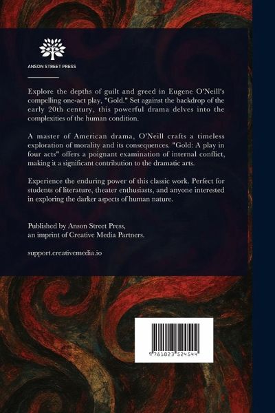 Explore the depths of guilt and greed in Eugene O'Neill's compelling one-act play, "Gold." Set against the backdrop of the early 20th century, this powerful drama delves into the complexities of the human condition. A master of American drama, O'Neill crafts a timeless exploration of morality and its consequences. "Gold: A play in four acts" offers a poignant examination of internal conflict, making it a significant contribution to the dramatic arts. Experience the enduring power of this classic work. Perfect for students of literature, theater enthusiasts, and anyone interested in exploring the darker aspects of human nature. This work has been selected by scholars as being culturally important, and is part of the knowledge base of civilization as we know it. This work is in the public domain in the United States of America, and possibly other nations. Within the United States, you may freely copy and distribute this work, as no entity (individual or corporate) has a copyright on the body of the work. Scholars believe, and we concur, that this work is important enough to be preserved, reproduced, and made generally available to the public. We appreciate your support of the preservation process, and thank you for being an important part of keeping this knowledge alive and relevant.