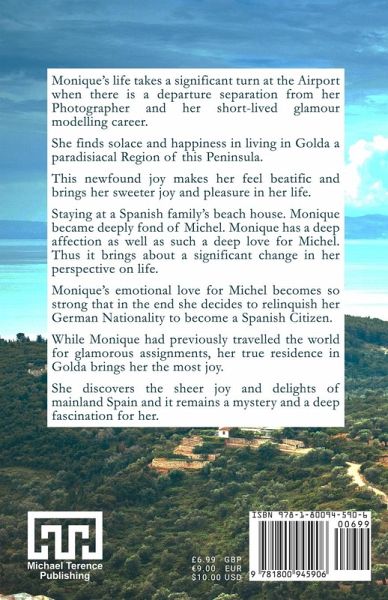 Monique's life takes a significant turn at the Airport when there is a departure separation from her Photographer and her short-lived glamour modelling career. She finds solace and happiness in living in Golda a paradisiacal Region of this Peninsula. This newfound joy makes her feel beatific and brings her sweeter joy and pleasure in her life. Staying at a Spanish family's beach house. Monique became deeply fond of Michel. Monique has a deep affection as well as such a deep love for Michel. Thus it brings about a significant change in her perspective on life. Monique's emotional love for Michel becomes so strong that in the end she decides to relinquish her German Nationality to become a Spanish Citizen. While Monique had previously travelled the world for glamorous assignments, her true residence in Golda brings her the most joy. She discovers the sheer joy and delights of mainland Spain and it remains a mystery and a deep fascination for her.