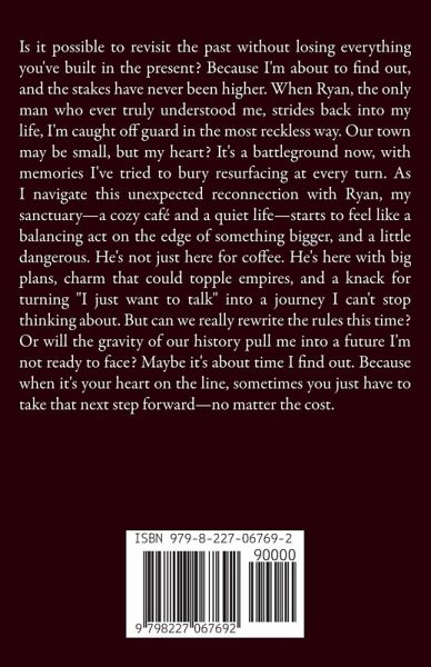 Is it possible to revisit the past without losing everything you've built in the present? Because I'm about to find out, and the stakes have never been higher. When Ryan, the only man who ever truly understood me, strides back into my life, I'm caught off guard in the most reckless way. Our town may be small, but my heart? It's a battleground now, with memories I've tried to bury resurfacing at every turn. As I navigate this unexpected reconnection with Ryan, my sanctuary-a cozy café and a quiet life-starts to feel like a balancing act on the edge of something bigger, and a little dangerous. He's not just here for coffee. He's here with big plans, charm that could topple empires, and a knack for turning "I just want to talk" into a journey I can't stop thinking about. But can we really rewrite the rules this time? Or will the gravity of our history pull me into a future I'm not ready to face? Maybe it's about time I find out. Because when it's your heart on the line, sometimes you just have to take that next step forward-no matter the cost.
