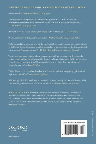 A narrative tour de force that combines wide-ranging scholarship with captivating prose, Kevin Starr's acclaimed multi-volume Americans and the California Dream is an unparalleled work of cultural history. In this volume, Starr covers the crucial postwar period--1950 to 1963--when the California we know today first burst into prominence. Starr brilliantly illuminates the dominant economic, social, and cultural forces in California in these pivotal years. In a powerful blend of telling events, colorful personalities, and insightful analyses, Starr examines such issues as the overnight creation of the postwar California suburb, the rise of Los Angeles as Super City, the reluctant emergence of San Diego as one of the largest cities in the nation, and the decline of political centrism. He explores the Silent Generation and the emergent Boomer youth cult, the Beats and the Hollywood "Rat Pack," the pervasive influence of Zen Buddhism and other Asian traditions in art and design, the rise of the University of California and the emergence of California itself as a utopia of higher education, the cooling of West Coast jazz, freeway and water projects of heroic magnitude, outdoor life and the beginnings of the environmental movement. More broadly, he shows how California not only became the most populous state in the Union, but in fact evolved into a mega-state en route to becoming the global commonwealth it is today. Golden Dreams continues an epic series that has been widely recognized for its signal contribution to the history of American culture in California. It is a book that transcends its stated subject to offer a wealth of insight into the growth of the Sun Belt and the West and indeed the dramatic transformation of America itself in these pivotal years following the Second World War.