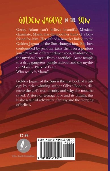 Golden Jaguar of the Sun blurb for Mauve Square website preview Geeky Texan ninth grader, Adam Winters, can't beautiful Mexican classmate María has dumped her hunk of a quarterback boyfriend for him. Her gift of an ancient bracelet linked to the legendary Golden Jaguar of the Sun changes him. But love confounded by jealousy takes the teens on a perilous journey across different dimensions, shadowed by the mystical beast, from a sacrificial Aztec temple to a drug gangsters' jungle hideout and to Xibalba, the 'Place of Fear' of the ancient Maya people. And will the boy discover who the girl really is and why fate has brought them together?.…mehr
