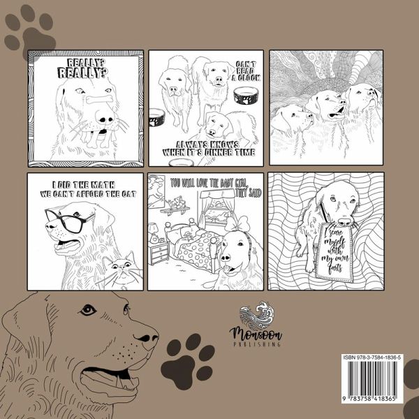 Golden Retriever Malbuch für ErwachseneEin lustiges Hunde Malbuch für alle Hunde Liebhaber und Golden Retriever BesitzerDas Malbuch beinhaltet66S.22x22cmschwarze Rückseiten (kein durchdrücken, optimal zum aufhängen)Retriever in versch. LebenslagenRetriever mit lustigen Sprüchenlustige Retriever Motiveuvm. Das Malbuch ist ein tolles Geschenk für alle Golden Retriever Liebhaber