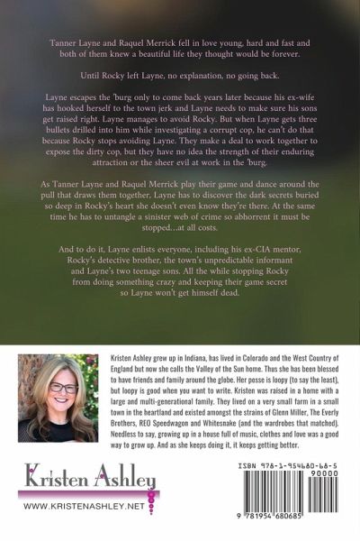 Tanner Layne and Raquel Merrick fell in love young, hard and fast and both of them knew a beautiful life they thought would be forever. Until Rocky left Layne, no explanation, no going back. Layne escapes the 'burg only to come back years later because his ex-wife has hooked herself to the town jerk and Layne needs to make sure his sons get raised right. Layne manages to avoid Rocky. But when Layne gets three bullets drilled into him while investigating a corrupt cop, he can't do that because Rocky stops avoiding Layne. They make a deal to work together to expose the dirty cop, but they have no idea the strength of their enduring attraction or the sheer evil at work in the 'burg. As Tanner Layne and Raquel Merrick play their game and dance around the pull that draws them together, Layne has to discover the dark secrets buried so deep in Rocky's heart she doesn't even know they're there. At the same time he has to untangle a sinister web of crime so abhorrent it must be stopped...at all costs. And to do it, Layne enlists everyone, including his ex-CIA mentor, Rocky's detective brother, the town's unpredictable informant and Layne's two teenage sons. All the while stopping Rocky from doing something crazy and keeping their game secret so Layne won't get himself dead.