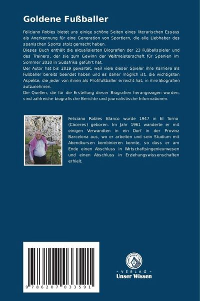 Feliciano Robles bietet uns einige schöne Seiten eines literarischen Essays als Anerkennung für eine Generation von Sportlern, die alle Liebhaber des spanischen Sports stolz gemacht haben.Dieses Buch enthält die aktualisierten Biografien der 23 Fußballspieler und des Trainers, der sie zum Gewinn der Weltmeisterschaft für Spanien im Sommer 2010 in Südafrika geführt hat.Der Autor hat bis 2019 gewartet, weil viele dieser Spieler ihre Karriere als Fußballer bereits beendet haben und es daher möglich ist, die wichtigsten Aspekte, die jeder von ihnen als Profifußballer erreicht hat, in ihre Biografien aufzunehmen.Die Quellen, die für die Erstellung dieser Biografien herangezogen wurden, sind zahlreiche biografische Berichte und journalistische Informationen.