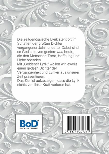 Die zeitgenössische Lyrik steht oft im Schatten der großen Dichter vergangener Jahrhunderte. Dabei sind es Gedichte von gestern und heute, die den Menschen Trost, Hoffnung und Liebe spenden.Mit Goldener Lyrik wollen wir jeweils einen großen Dichter der Vergangenheit und Lyriker aus unserer Zeit präsentieren.Das Ziel ist aufzuzeigen, dass die Lyrik nichts von ihrer Kraft verloren hat.