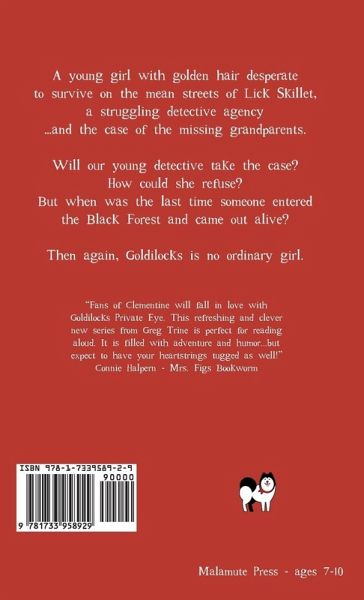 "Skillfully blends fairy tales and detective fiction with a coming-of-age story about braving danger to prove oneself...a pleasing well-judged blend of genres with a good resolution." - Kirkus Reviews When her father dies, Goldilocks is left with nothing but her loyal cat Charlotte and a fledgling detective agency, which hasn't turned a profit in years. Then again, her father wasn't much of a detective…and even less of a businessman. Behind in the rent, with the landlady breathing down her neck and an over zealous orphanage director out to get her, Goldilocks knows that the only way to keep herself off the mean streets of Lick Skillet (and out of the orphanage) is to do what her father couldn't-to make the agency a success. It's not easy. How does she spread the word without getting snatched by Tom the Kid Snatcher, chief orphanage henchman…who works on commission! Goldilocks disguises herself by covering her locks with a hat, but when the wind blows the hat off, Tom notices and the chase is on. Goldilocks escapes by the skin of her teeth. She thinks she's safe-and then…there's a knock at the door. Only it's not Tom the Kid Snatcher. It's a client, looking to solve a missing persons case. "My grandparents are missing and there are bears living in her house. Will you take the case?" Will she ever. With more twists than San Francisco's Lombard Street, GOLDILOCKS, PRIVATE EYE tells the tale of a girl desperate to make it on her own and her loyal cat who expects nothing less.