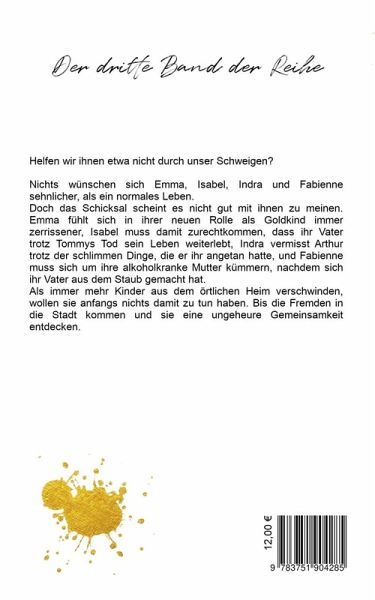 Helfen wir ihnen etwa nicht durch unser Schweigen?Nichts wünschen sich Emma, Isabel, Indra und Fabienne sehnlicher, als ein normales Leben.Doch das Schicksal scheint es nicht gut mit ihnen zu meinen. Emma fühlt sich in ihrer neuen Rolle als Goldkind immer zerrissener, Isabel muss damit zurechtkommen, dass ihr Vater trotz Tommys Tod sein Leben weiterlebt, Indra vermisst Arthur trotz der schlimmen Dinge, die er ihr angetan hatte, und Fabienne muss sich um ihre alkoholkranke Mutter kümmern, nachdem sich ihr Vater aus dem Staub gemacht hat.Als immer mehr Kinder aus dem örtlichen Heim verschwunden, wollen sie anfangs nichts damit zu tun haben. Bis die Fremden in die Stadt kommen und sie eine ungeheure Gemeinsamkeit entdecken.