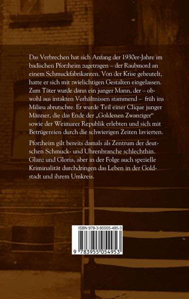 Das Verbrechen hat sich Anfang der 1930er-Jahre im badischen Pforzheim zugetragen - der Raubmord an einem Schmuckfabrikanten. Von der Krise gebeutelt, hatte er sich mit zwielichtigen Gestalten eingelassen. Zum Täter wurde dann ein junger Mann, der - obwohl aus intakten Verhältnissen stammend - früh ins Milieu abrutschte. Er wurde Teil einer Clique jungerMänner, die das Ende der "Goldenen Zwanziger" sowie der Weimarer Republik erlebten und sich mit Betrügereien durch die schwierigen Zeiten lavierten. Pforzheim gilt bereits damals als Zentrum der deutschen Schmuck- und Uhrenbranche schlechthin. Glanz und Gloria, aber in der Folge auch spezielle Kriminalität durchdringen das Leben in der Goldstadt und ihrem Umkreis.