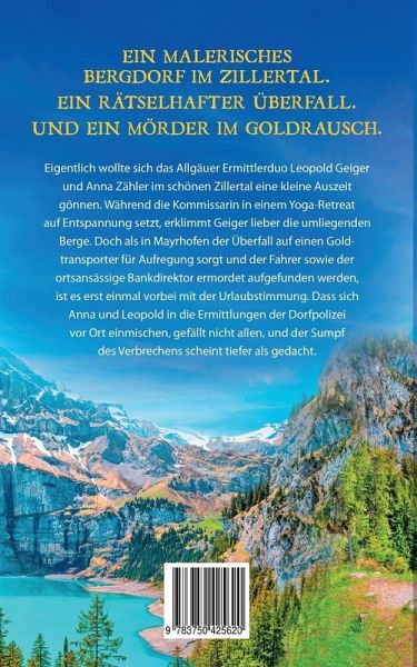 Ein malerisches Bergdorf im Zillertal. Ein rätselhafter Überfall. Und ein Mörder im Goldrausch. Eigentlich wollte sich das Allgäuer Ermittlerduo Leopold Geiger und Anna Zähler im schönen Zillertal eine kleine Auszeit gönnen. Während die Kommissarin in einem Yoga-Retreat auf Entspannung setzt, erklimmt Geiger lieber die umliegenden Berge. Doch als in Mayrhofen der Überfall auf einen Goldtransporter für Aufregung sorgt und der Fahrer sowie der ortsansässige Bankdirektor ermordet aufgefunden werden, ist es erst einmal vorbei mit der Urlaubstimmung. Dass sich Anna und Leopold in die Ermittlungen der Dorfpolizei vor Ort einmischen, gefällt nicht allen, und der Sumpf des Verbrechens scheint tiefer als gedacht.