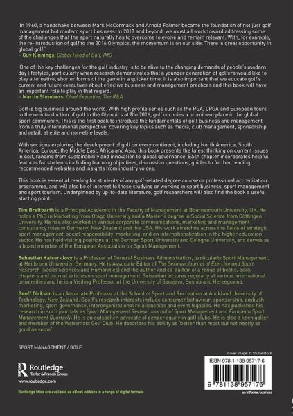 "One of the key challenges for the golf industry is to be alive to the changing demands of people's modern day lifestyles, particularly when research demonstrates that a younger generation of golfers would like to play alternative, shorter forms of the game in a quicker time. It is also important that we educate golf's current and future executives about effective business and management practices and this book will have an important role to play in that regard."- Martin Slumbers, Chief Executive, The R&A