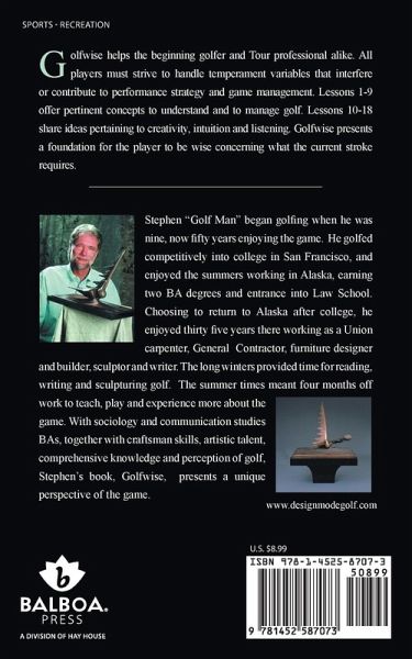 Golfwise helps the beginning golfer and Tour professional alike. All players must strive to handle temperament variables that interfere or contribute to performance strategy and game management. Lessons 1-9 offer pertinent concepts to understand and to manage golf. Lessons 10-18 share ideas pertaining to creativity, intuition and listening. Golfwise presents a foundation for the player to be wise concerning what the current stroke requires.