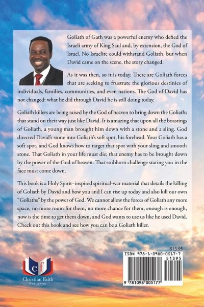 Goliath of Gath was a powerful enemy who defied the Israeli army of King Saul and, by extension, the God of Israel. No Israelite could withstand Goliath, but when David came on the scene, the story changed. As it was then, so it is today. There are Goliath forces that are seeking to frustrate the glorious destinies of individuals, families, communities, and even nations. The God of David has not changed; what he did through David he is still doing today. Goliath killers are being raised by the God of heaven to bring down the Goliaths that stand on their way just like David. It is amazing that upon all the boastings of Goliath, a young man brought him down with a stone and a sling. God directed David's stone into Goliath's soft spot, his forehead. Your Goliath has a soft spot, and God knows how to target that spot with your sling and smooth stone. That Goliath in your life must die; that enemy has to be brought down by the power of the God of heaven. That stubborn challenge staring you in the face must come down. This book is a Holy Spirit-inspired spiritual-war material that details the killing of Goliath by David and how you and I can rise up today and also kill our own "Goliaths" by the power of God. We cannot allow the forces of Goliath any more space, no more room for them, no more chance for them, enough is enough, now is the time to get them down, and God wants to use us like he used David. Check out this book and see how you can be a Goliath killer.