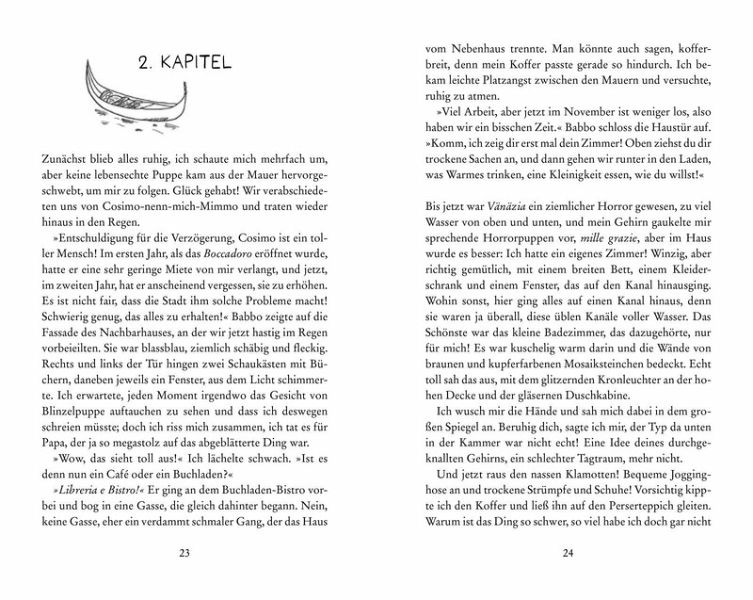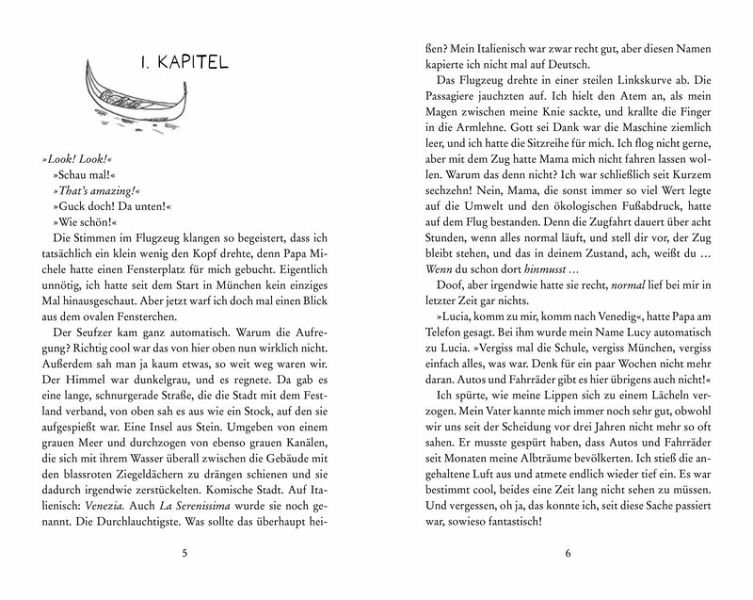 Wenn sie ihren Vater in Italien besucht, wird aus der sechzehnjährigen Lucy: Luciiiiiaaa! Aber, mamma mia, was soll sie nur im November in Venedig anfangen? Es regnet, es ist grau, und es gibt nur uralte Menschen und Touristen. Außer diesem wahnsinnig süßen Wollmützen-Typ auf dem Boot, aber der würdigt sie keines Blickes. Na toll. Als sie später verdutzt feststellt, dass sie offensichtlich den falschen Koffer geschnappt hat und nur Jungsklamotten darin findet, wird ihr klar: Der gehört dem Wollmützen-Jungen! Doch wie soll sie ihn wiederfinden? Und welche Rolle spielt dabei der alte Trödelladen von Nachbar Cosimo? In den engen Gassen von Venedig beginnt für Lucia ein magisches Abenteuer. Mit einem romantischen Picknick mit heißem Kakao auf einem Bootssteg vor Murano - und vielleicht sogar mit einem Happy End?