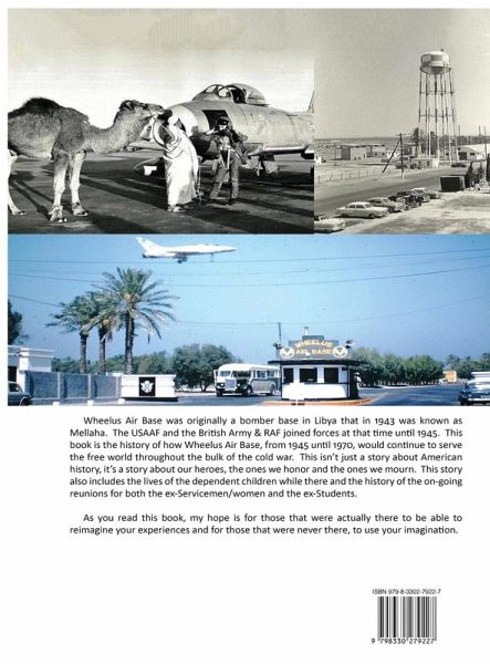 Wheelus Air Base was originally a bomber base in Libya that in 1943 was known as Mellaha. The USAAF and the British Army & RAF joined forces at that time until 1945. This book is the history of how Wheelus Air Base, from 1945 until 1970, would continue to serve the free world throughout the bulk of the cold war. This isn't just a story about American history, it's a story about our heroes, the ones we honor and the ones we mourn. This story also includes the lives of the dependent children while there and the history of the on-going reunions for both the ex-Servicemen/women and the ex-Students. As you read this book, my hope is for those that were actually there to be able to reimagine your experiences and for those that were never there, to use your imagination.