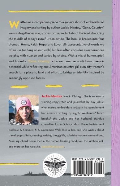 Written as a companion piece to a gallery show of embroidered imagery and writing by author Jackie Mantey, "Gone, Country" weaves together essays, stories, prose, and art about life lived straddling the middle of today's rural/ urban divide. The book is broken into four themes—Home, Faith, Hope, and Love—all representative of words we often use (or hang on our walls) but less often consider as experiences weighty with nuance and varied by choice. With a mix of humor, grief, and honesty, "Gone, Country" explores creative nonfiction's memoir potential while reflecting one American country-girl-cum-city-woman's search for a place to land and effort to bridge an identity inspired by seemingly opposed forces.