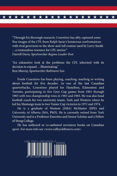Canadian Football 1983-1994: Gone South focuses on the CFL's rationale and move to expand to the United States. It details the controversy throughout the League and the country. It leads directly to the next book in this series Home Again. Therein, The Baltimore Stallions and their Grey Cup win of 1995 is documented: the first and only Grey Cup win by an American based team. The Stallions moved the next year to Montreal to become the Alouettes and the American experiment was put to rest, for now. After 1995, there was a return to an all Canadian league. Both books also continue with the trend from amateur to professional and the move towards the revitalization of football in Canada.