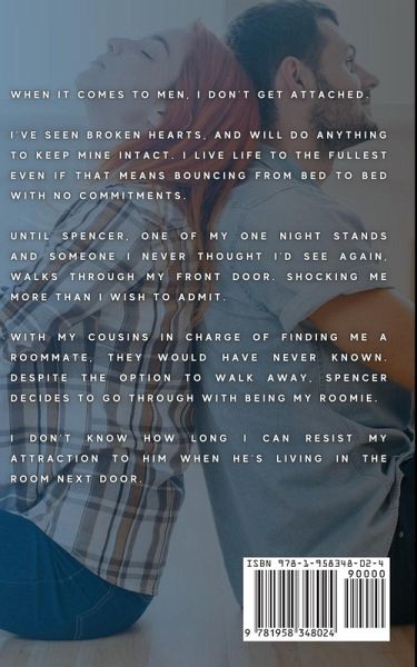 When it comes to men, I don't get attached. I've seen broken hearts, and will do anything to keep mine intact. I live life to the fullest even if that means bouncing from bed to bed with no commitments. Until Spencer, one of my one night stands and someone I never thought I'd see again, walks through my front door. Shocking me more than I wish to admit. With my cousins in charge of finding me a roommate, they would have never known. Despite the option to walk away, Spencer decides to go through with being my roomie. I don't know how long I can resist my attraction to him when he's living in the room next door.