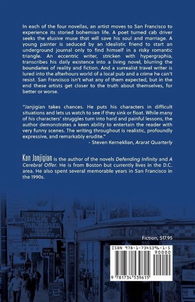 In each of the four novellas, an artist moves to San Francisco to experience its storied bohemian life. A poet turned cab driver seeks the elusive muse that will save his soul and marriage. A young painter is seduced by an idealistic friend to start an underground journal only to find himself in a risky romantic triangle. An eccentric writer, stricken with hypergraphia, transcribes his daily existence into a living novel, blurring the boundaries of reality and fiction. And a surrealist travel writer is lured into the afterhours world of a local pub and a crime he can't resist. San Francisco isn't what any of them expected, but in the end these artists get closer to the truth about themselves, for better or worse.