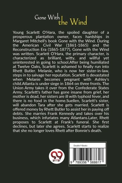 Young Scarlett O'Hara, the spoiled daughter of a prosperous plantation owner, faces hardships in Margaret Mitchell's book Gone with the Wind. During the American Civil War (1861-1865) and the Reconstruction Era (1865-1877), Gone with the Wind was written. Scarlett O'Hara, the primary character, is characterized as brilliant, witty, and willful yet uninterested in going to school.After being humiliated at Twelve Oaks, Scarlett is ashamed to finally run into Rhett Butler. Melanie, who is now her sister-in-law, steps in to salvage her reputation. Scarlett is devastated when Melanie becomes pregnant with Ashley's child.Atlanta is under siege in 1864 on three fronts. The Union Army takes it over from the Confederate States Army. Scarlett's father has gone insane from grief, her mother is dead, her sisters are ill with typhoid fever, and there is no food in the home.Suellen, Scarlett's sister, will abandon Tara after she gets married. Scarlett is offered money by Rhett Butler to assist her in paying off debts. She marries Frank Kennedy and takes over his business, which infuriates many Atlantans.Later, Rhett proposes to Scarlett at Frank's funeral. She first declines, but later she agrees. Scarlett starts to realize that she no longer loves Rhett after Bonnie's death.