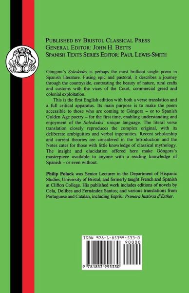 The aim of this edition is to make the poem approachable to those who are coming at Gongora, or Spanish Golden Age poetry, for the first time, and to help them understand and enjoy it. Fusing epic and pastoral, the poem describes a journey through the countryside and contrasts the beauty of nature and of the rural crafts and customs with the vices of court, commercial greed and colonial exploitation. This edition, with its literal verse translation, aims to make the poem available to anyone with a reading knowledge of Spanish, or even without.