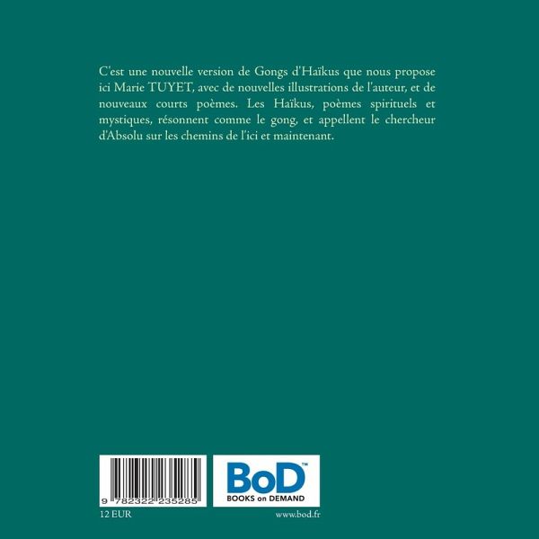 C'est une nouvelle version de Gongs d'Haïkus que nous propose ici Marie TUYET, avec de nouvelles illustrations de l'auteur, et de nouveaux courts poèmes. Les Haïkus, poèmes spirituels et mystiques, résonnent comme le gong, et appellent le chercheur d'Absolu sur les chemins de l'ici et maintenant.