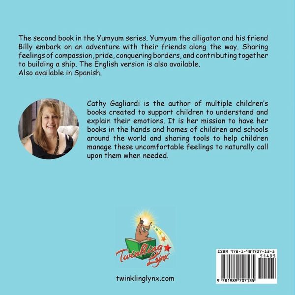 Gonna Build a Boat is the second book in a series featuring Yumyum the alligator by Best-Selling Childrens Book Author, Cathy Gagliardi. This beautiful story will be a lovely addition to your child's library and quickly become a favorite of theirs and yours. This book shows Billy and his friend Yumyum the Alligator having a goal and including others, making them feel special. They all work together with pride to build more than a boat. During this adventure, they come across Dot who is showing signs of depression. She is sad, doesn't feel like doing anything or being with anyone, and doesn't want to ruin the experience for others. Does this sound familiar? It should, as many people show these signs and are considered shy, snobby, rude, and 'Different'. Next, they meet Mickey. Frustrated as he tries to ride a broken bike. Without the money to buy a new bike or have 'nice things', Mickey has no chance of participating in any exciting adventures. Like the neighbours, it is common for his family to be considered poor, bums, dirty, ignorant, and 'Different'. They were lucky enough to meet Malcolm and his dog Rascal on their journey. Malcolm being disabled could cause an uncomfortable feeling, making one choose not to include him or expect him not to want to be included. Instead of letting a disabled person decide what they can achieve and accepting them as equal, they can be considered incompetent and 'Different'. 'Different' should not be uncomfortable but interesting as we are really all different from one another. This is a journey of learning acceptance, compassion, and worth of yourself and others. It teaches children how to embrace the differences in others. The value of being the one who makes the effort to give love is equal to that of the recipient. Yumyum, Billy, and all their new friends have experienced a new level of what it means to live with love. Other books in the Yumyum series include:Bellyflies Mother Love I Love Ice Cream Chocolate Egg Willow
