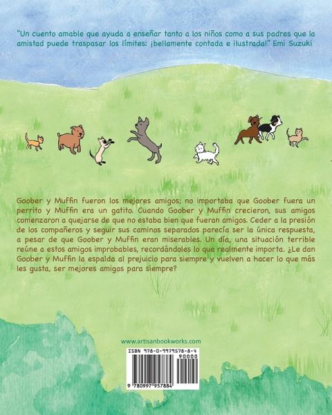Goober y Muffin fueron los mejores amigos; no importaba que Goober fuera un perrito y Muffin era un gatito. Cuando Goober y Muffin crecieron, sus amigos comenzaron a quejarse de que no estaba bien que fueran amigos. Ceder a la presión de los compañeros y seguir sus caminos separados parecía ser la única respuesta, a pesar de que Goober y Muffin eran miserables. Un día, una situación terrible reúne a estos amigos improbables, recordándoles lo que realmente importa. ¿Le dan Goober y Muffin la espalda al prejuicio para siempre y vuelven a hacer lo que más les gusta, ser mejores amigos para siempre? "Un cuento amable que ayuda a enseñar tanto a los niños como a sus padres que la amistad puede traspasar los límites: ¡bellamente contada e ilustrada!" Emi Suzuki
